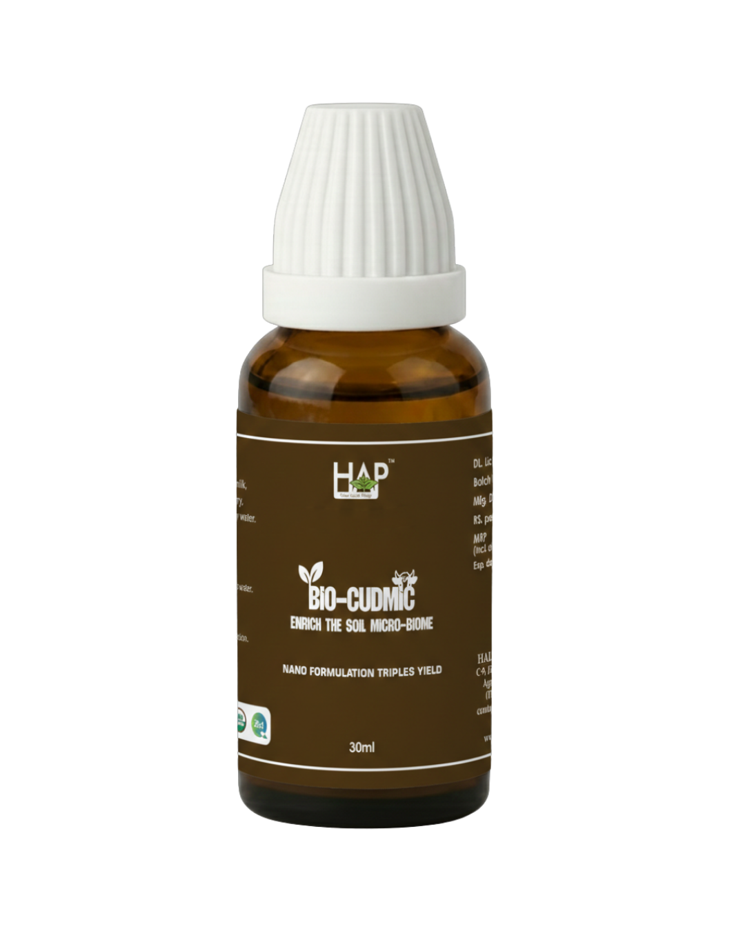 Bio-CudMic (Panchakaviya) is a natural, organic bio-stimulant formulated to enrich the soil micro-biome and improve overall soil health. Prepared using traditional cow-based inputs combined with algal extracts and natural fermenting ingredients, it enhances beneficial microbial activity in the soil. This formulation improves nutrient