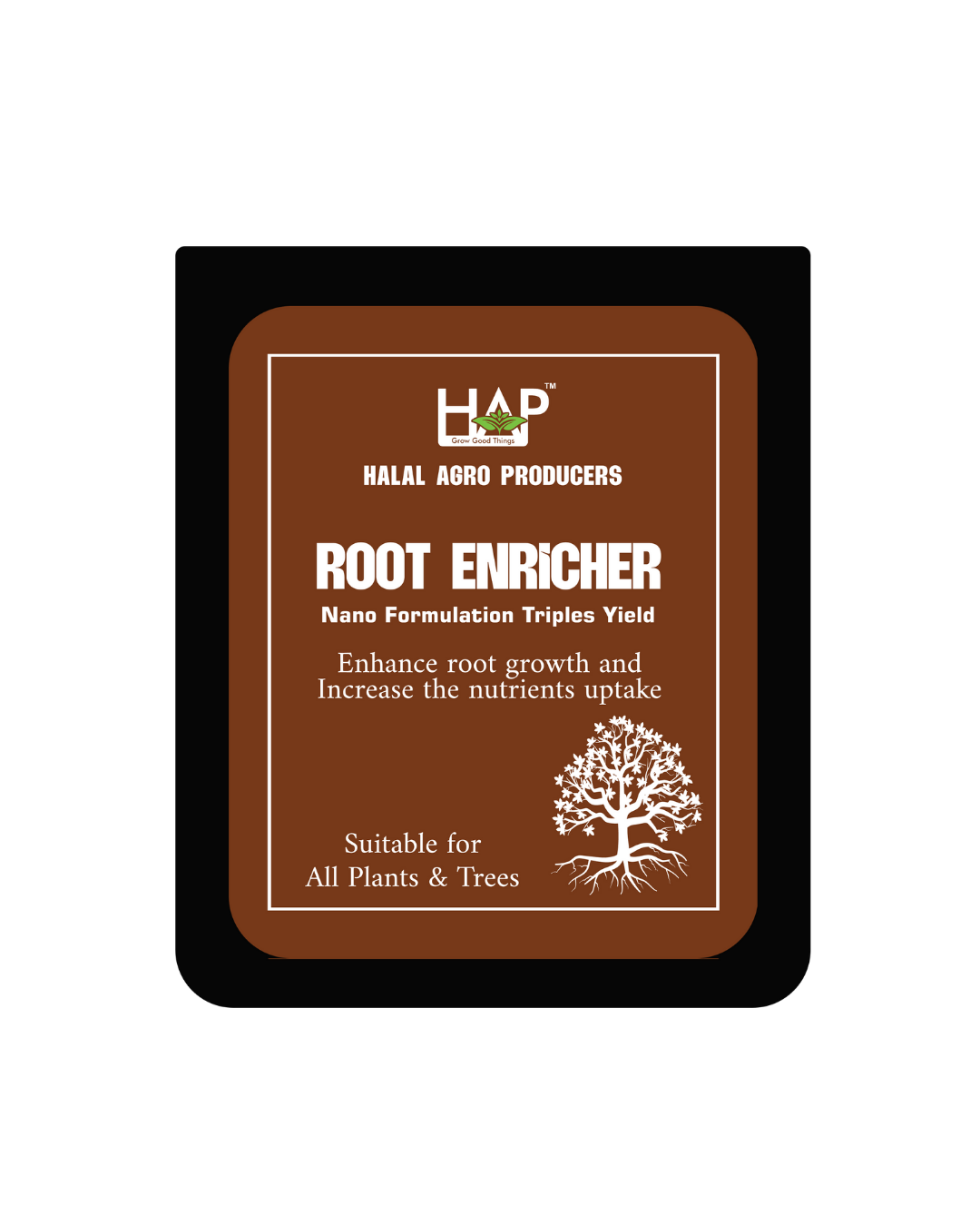 HAP Root Enricher is a unique, 100% natural, agro-homeopathy preparation suitable for all plants and trees. Formulated with NANO TECH, it strengthens the root system, energizes the stem, and improves overall yield by enabling more efficient nutrient absorption, leading to faster and healthier growth.